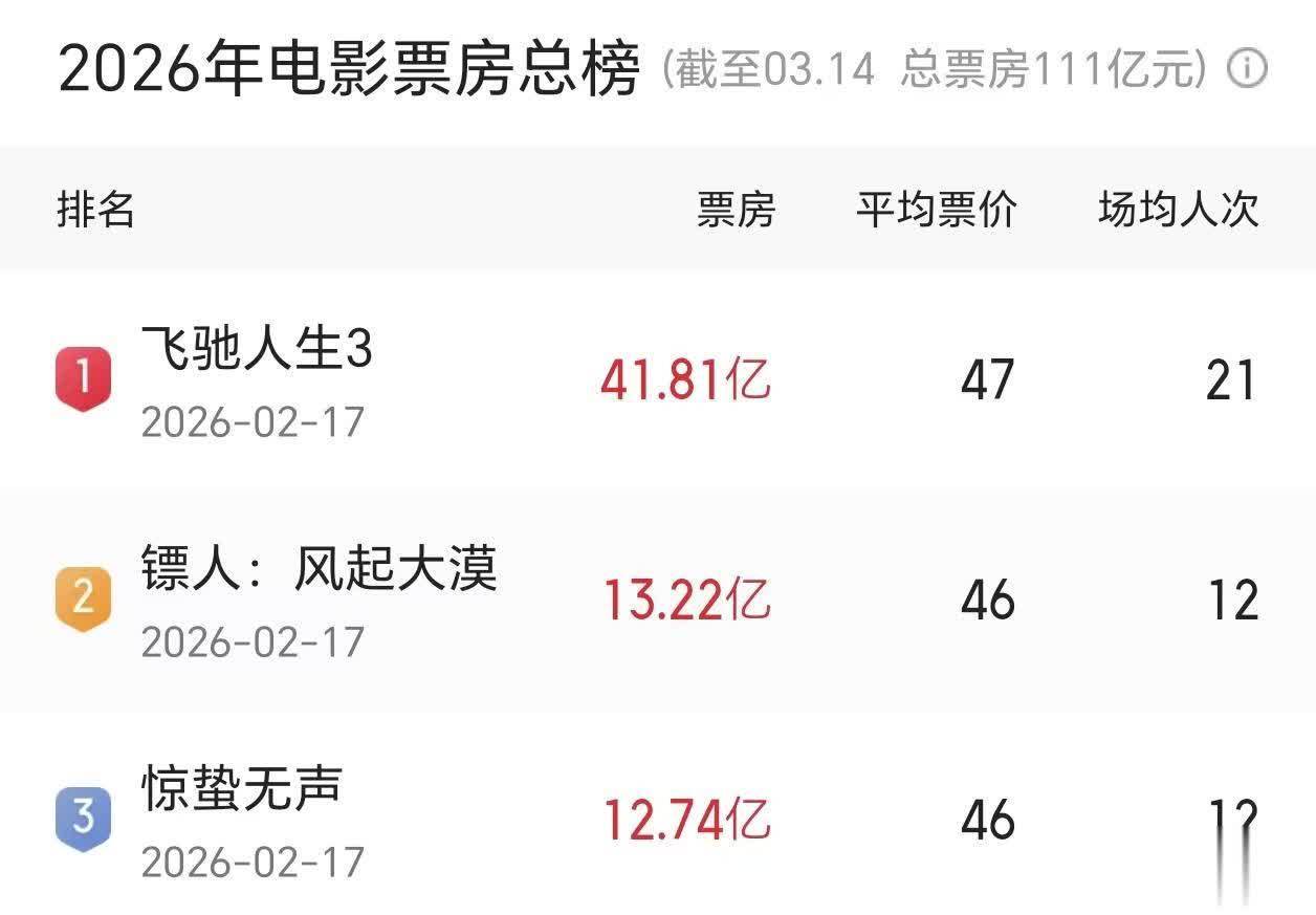 现在,票房表现最好的电影是沈腾主演的《飞驰人》,它的总票房目前还没有达亿人民币。而之后位居第二名的《镖人》,票房成绩直接断档,和《飞驰人》相比少了亿人民币。